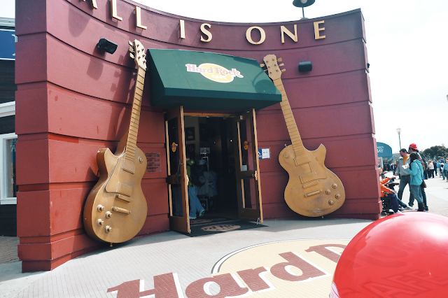 Después de eso nos fuimos a almorzar a Hard Rock Café que queda en Pier 39. Gracias a las entradas del museo de cera, nos dieron regalos gratis a Sze-Sze y a mà pero igual no es algo que yo hubiera comprado...